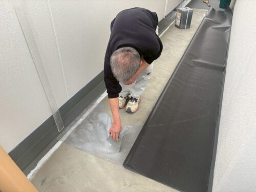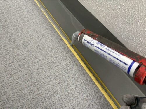 床シートが張り終わったら、端末処理としてシーリングを充填です。