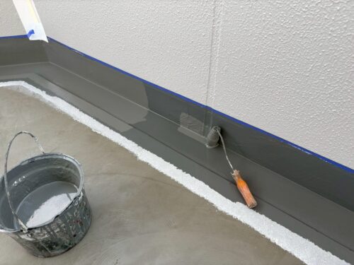 側溝と巾木に関しては、大同塗料『水系ソフトトップコートAU』を2回塗り仕上げです。