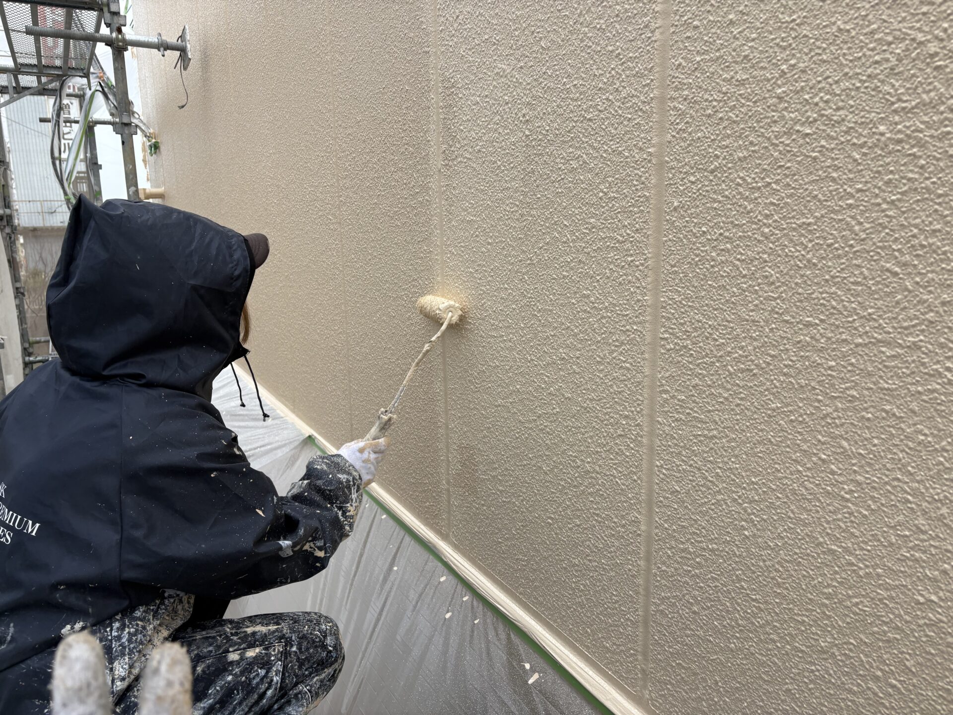 カチオンシーラーを下塗し、「プレミアムシリコン」を2回塗りしていきます!
