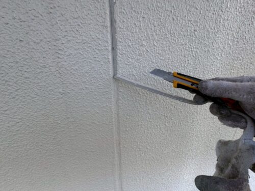 Vカット等をする理由としては、シーリングの接着面積を広くして、奥まで充填することで耐久性を持たせる役割があります。