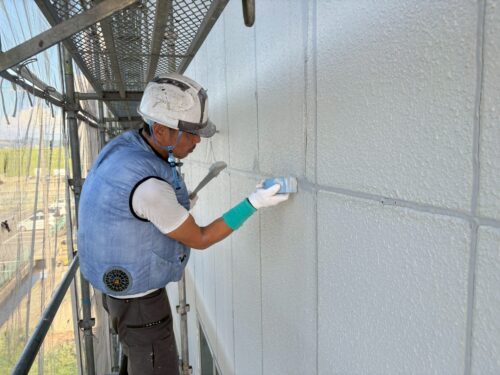 高圧洗浄が完了したら、ALC外壁目地とサッシ廻りのシーリング工事に進みます!