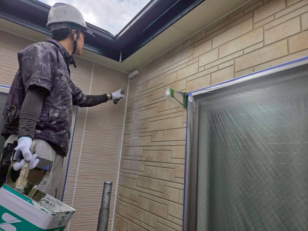 下塗りには「水性ハイブリッドシーラー」を使用しています。