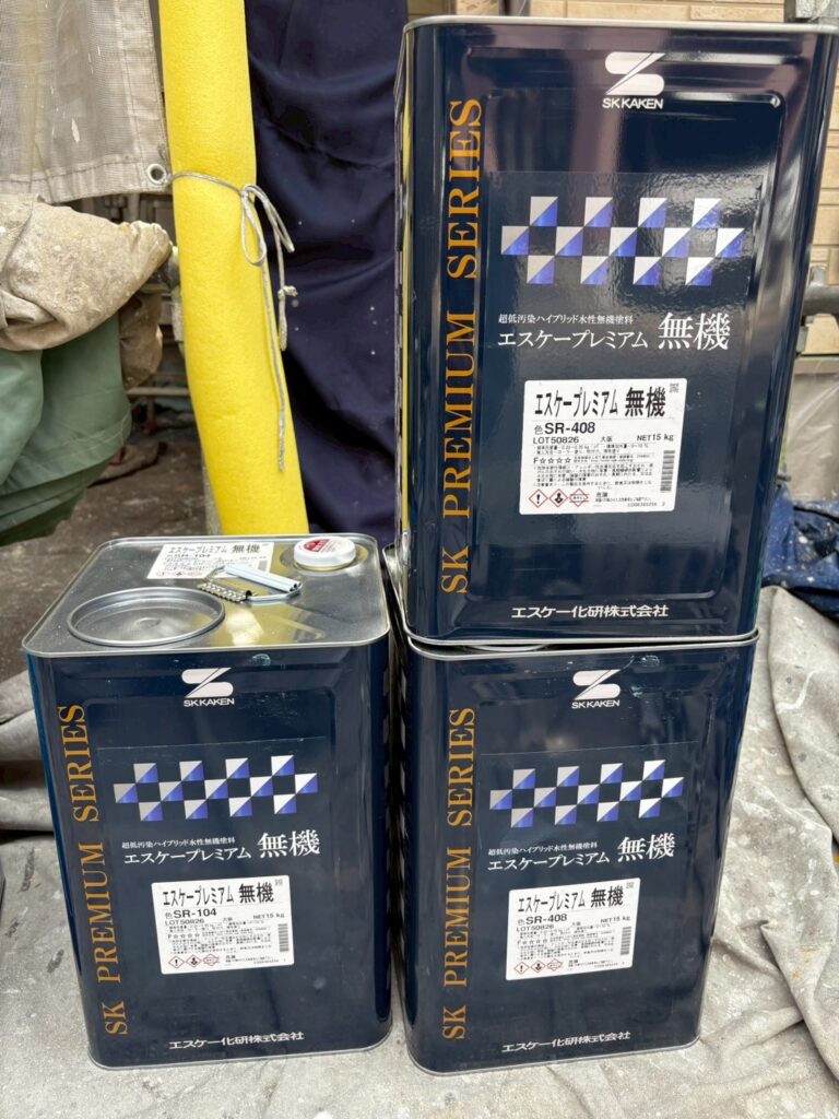 今回外壁に使用した塗料は「プレミアム無機」という日本大手3代メーカー「SK化研」の無機塗料です。