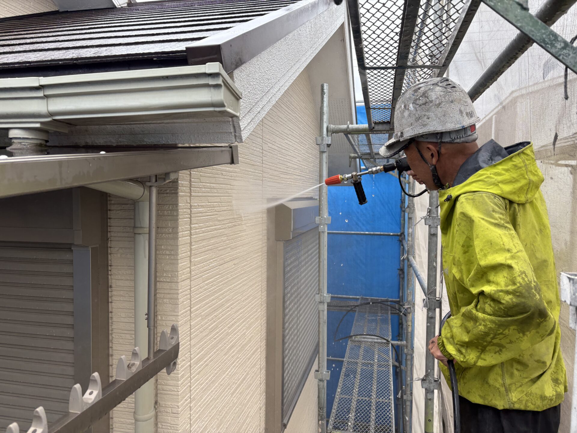 高圧水洗は、塗装下地を清潔にして塗料の密着性を向上させる目的で行います!