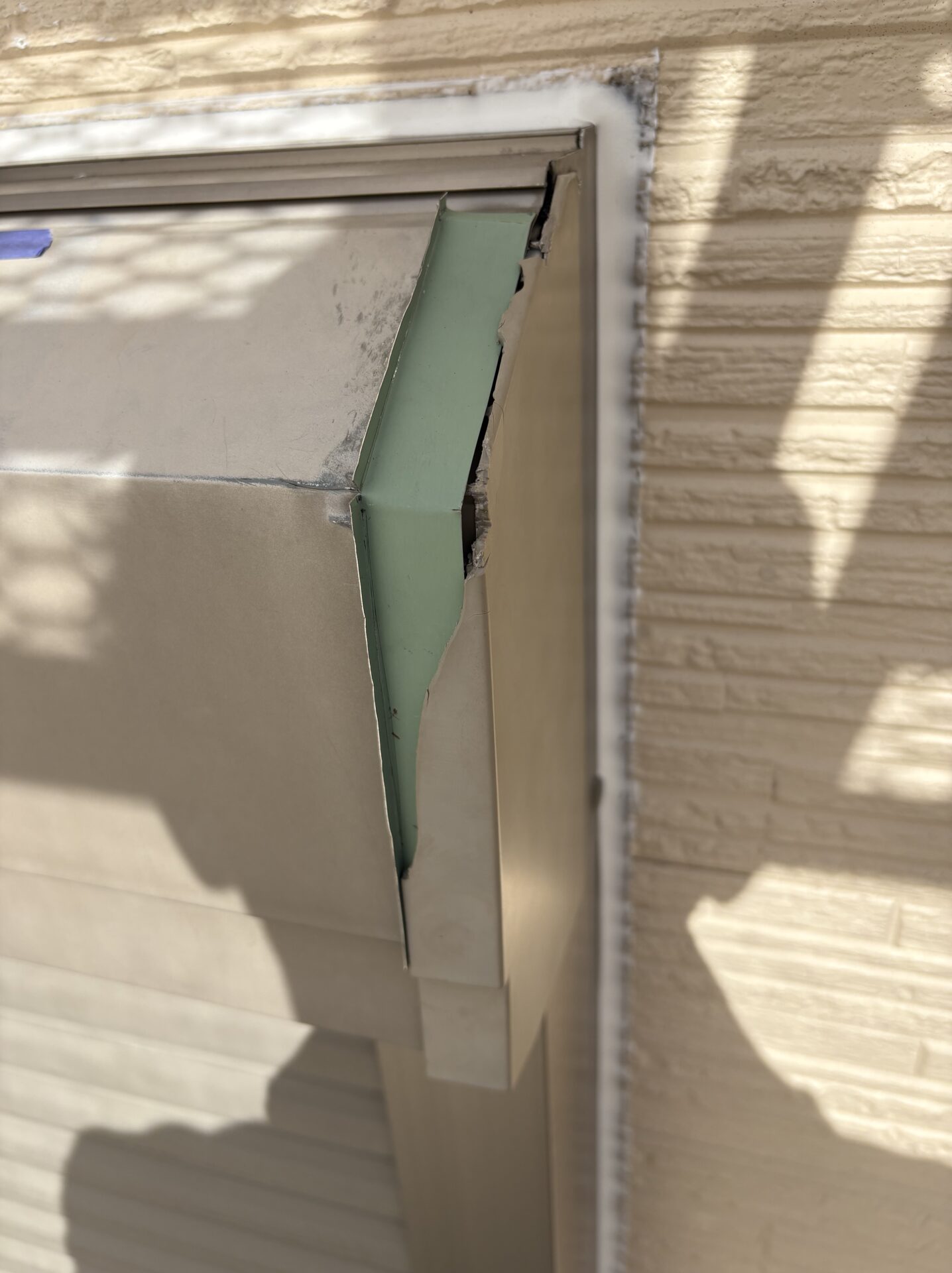 今回、シャッターケースの破損している箇所の補修も施工しました。