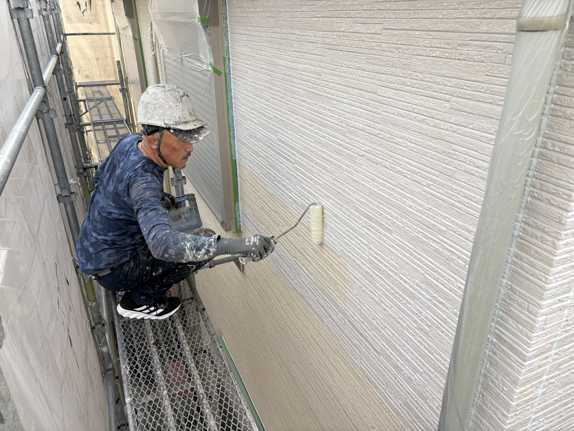 外壁塗装は、まず「水性ハイブリッドシーラー」を下塗りしていきます!