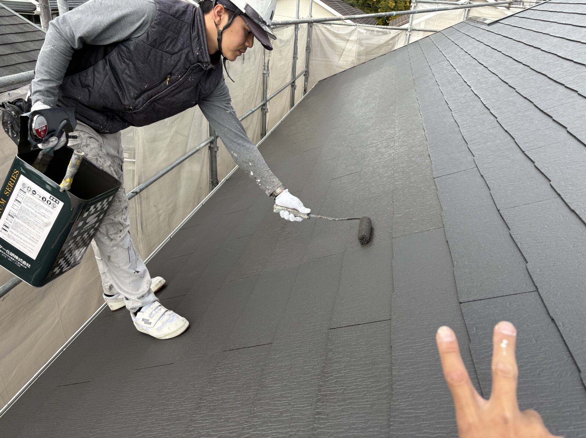 上塗りには「プレミアム無機ルーフ」を使用しています。