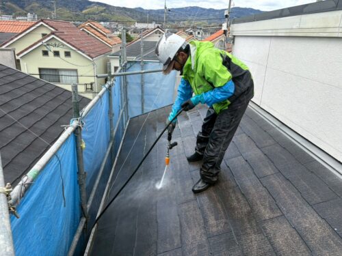 まずは屋根の洗浄をしていきます。