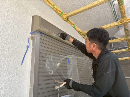 シャッターボックス塗装は、下塗り『密着バインダー』上塗り『プレミアムNADシリコン』2回塗りです。