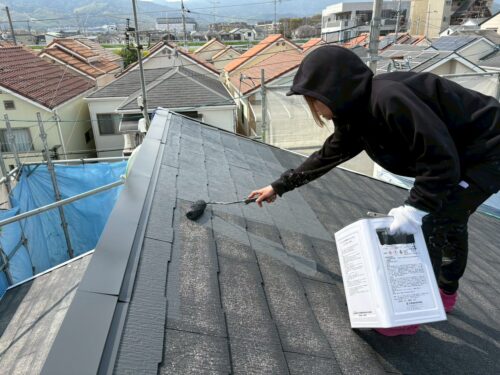 屋根塗装では、『マイルドシーラー』を下塗りして、エスケー化研『プレミアムルーフSi』を上塗り2回塗りして仕上げました。