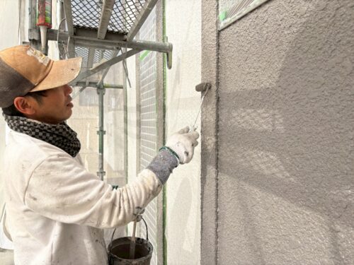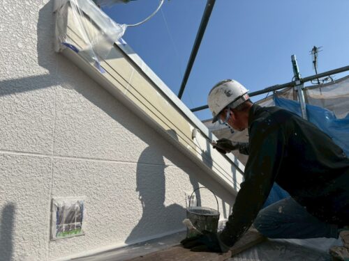 破風板塗装は『ハイブリッドシーラー』を下塗りして、エスケー化研『プレミアムNADシリコン』を2回塗りです。
