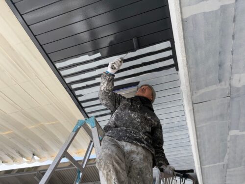 庇屋根塗装は、錆止めを下塗りして『プレミアムNADシリコン』を上塗り2回塗りです。