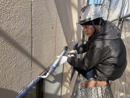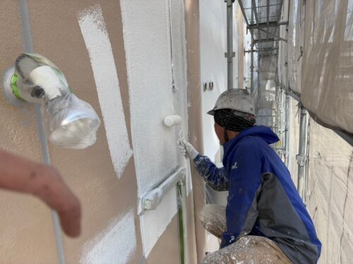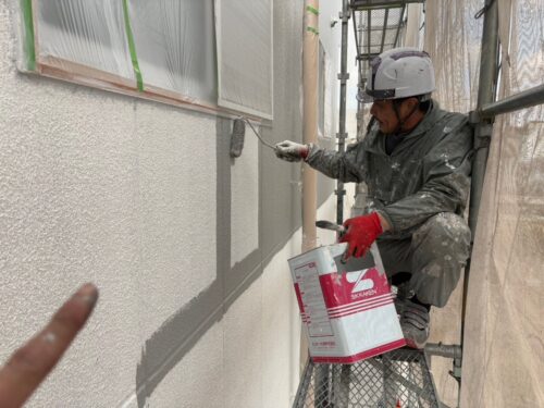 シーリングで防水処理をしたら、いよいよ外壁塗装です。