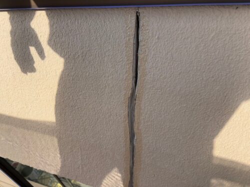 外壁目地や窓廻り・クラック部に充填して、均しヘラで平滑に均しました。