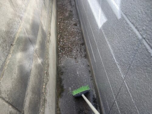 チョーキング現象が起こっていたので、塗料の密着性向上にため、丁寧に洗浄していきます。